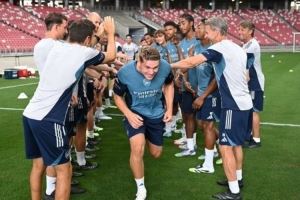 体育资讯7月29日讯 阿森纳官方更新社媒动态,晒出球员们欢迎新援约克雷斯的照片。